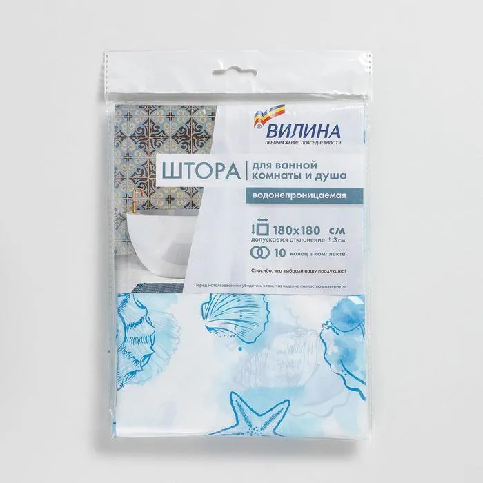 Штора для ванной «Посейдон» не только защищает поверхности в ванной от брызг, но и создаёт уют. Данные модели созданы из качественного полиэтилена, что обеспечивает водонепроницаемость. Можно не беспокоиться о сухости пола или коврика.