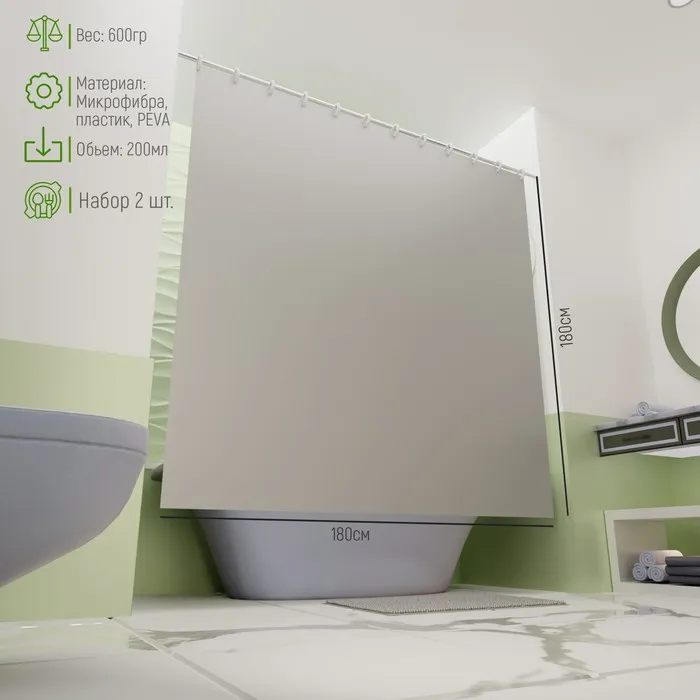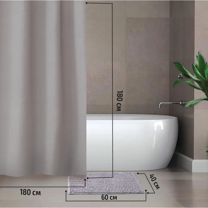 Штора для ванной с ковриком «Комфорт», штора 180×180 см, ковёр 40×60 см, серые — Характеристики