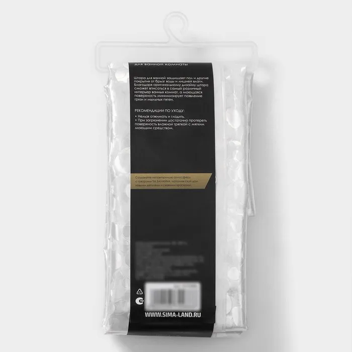 Штора для ванной SAVANNA «Галька», 180×200 см, PEVA, белая — Характеристики