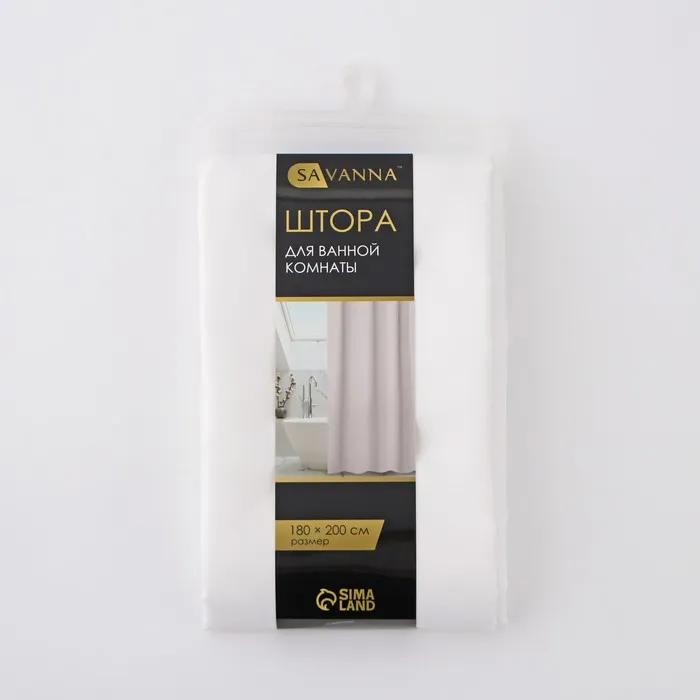 Штора для ванной SAVANNA «Классика» с люверсами, 180×200 см, белая — Характеристики