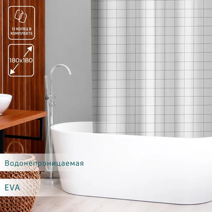 Штора для ванной SAVANNA Perfecto, 180×180 см, EVA, серая — Характеристики