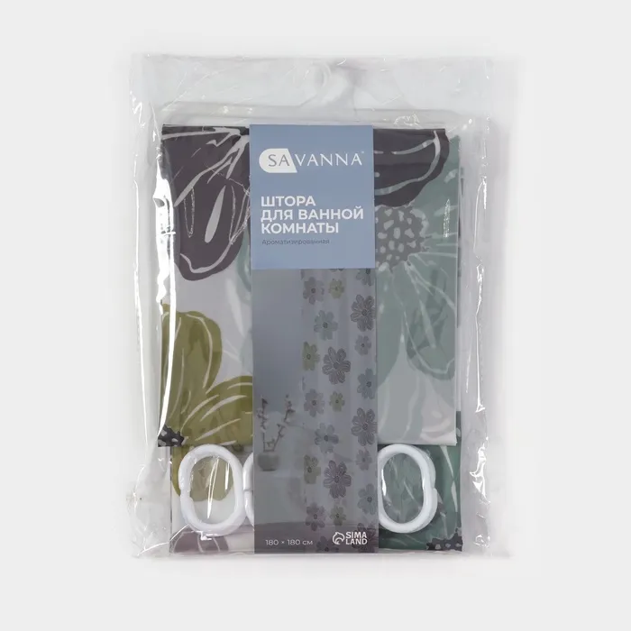 Штора для ванной «Цветы», с люверсами, с утяжелителями, PEVA ароматизированная, 180×180 см — Характеристики