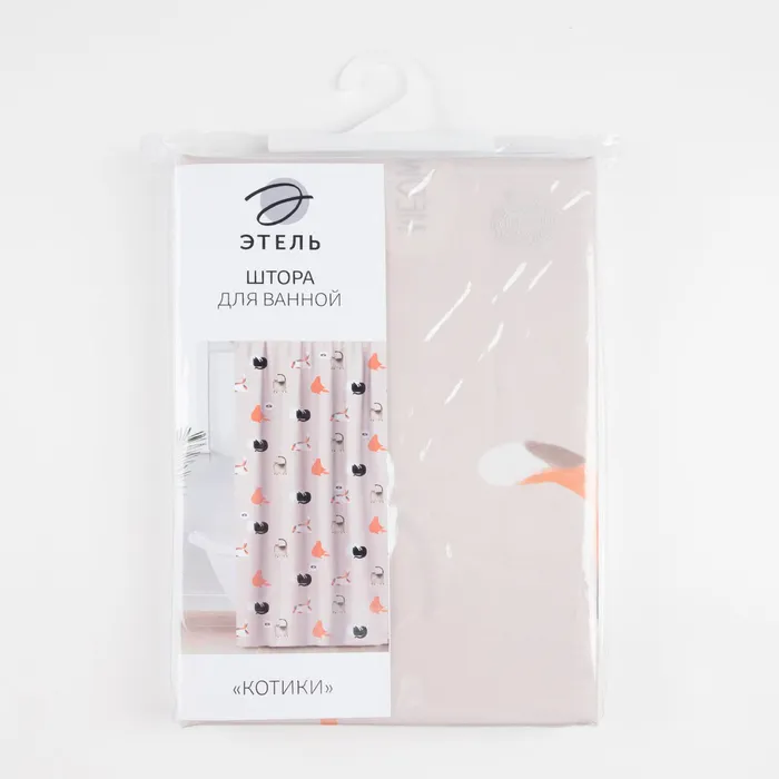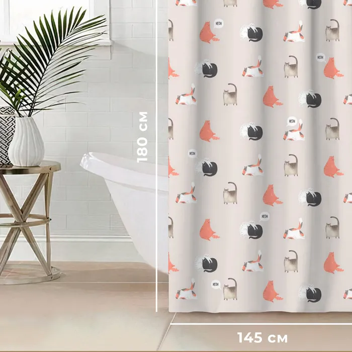 Штора для ванной водоотталкивающая Этель «Котики», 145х180 см, цвет бежевый, ткань оксфорд, 210гр/м2 — Характеристики