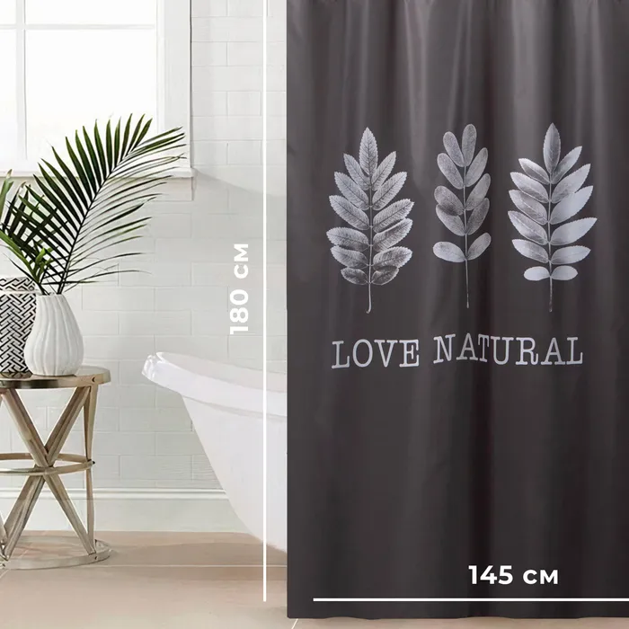 Штора для ванной водоотталкивающая Этель «Natural print», 145×180 см, цвет серый, ткань оксфорд, 210гр/м2 — Характеристики