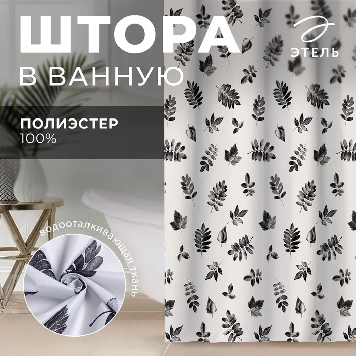 Штора для ванной водоотталкивающая Этель «Pure nature«, 145×180 см, цвет серый, ткань оксфорд, 210гр/м2 — Характеристики