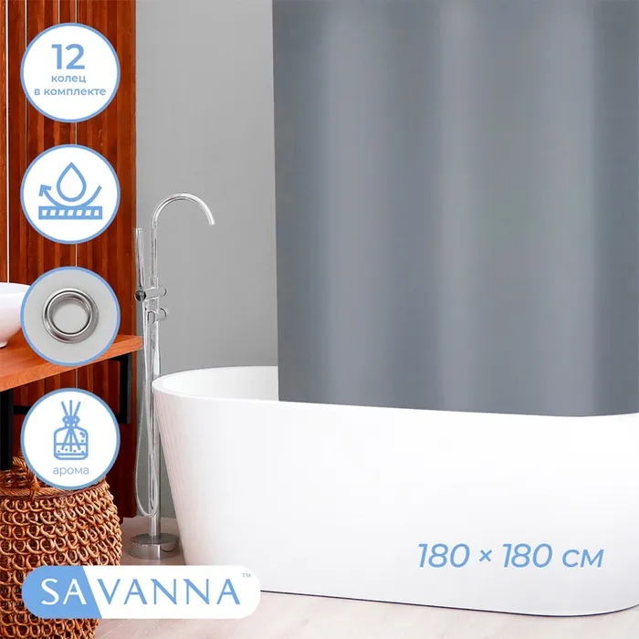 Водоотталкивающая тканевая штора - универсальный аксессуар для ванной комнаты, выполненная из плотного полиэстера с водоотталкивающей пропиткой.
