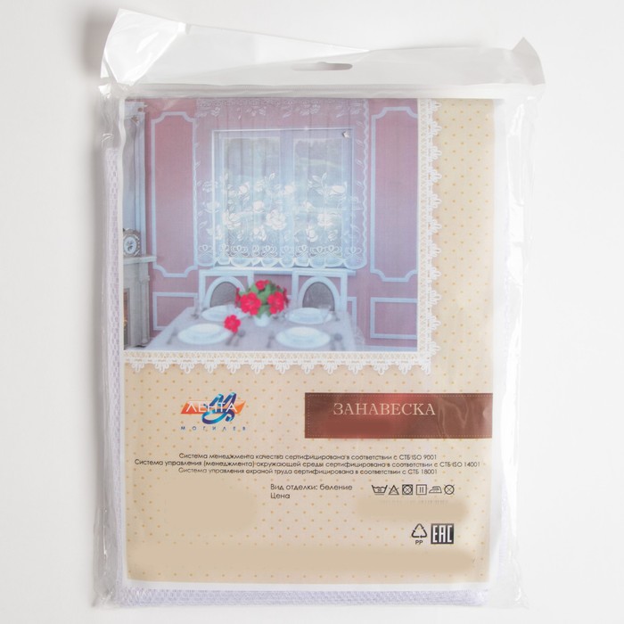 Штора на кухню без шторной ленты, 200х165 см, цвет белый, 100% полиэстер — Характеристики
