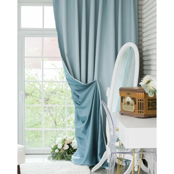 Штора портьерная «Этель» 145×265 см, двусторонний блэкаут, цвет Голубой, пл. 240 г/м², 100% п/э — Характеристики