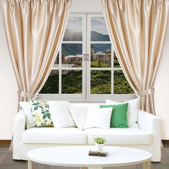 Примечание: В комплект входит одна портьерная штора и прихват. Ширина шторной ленты 4 см.