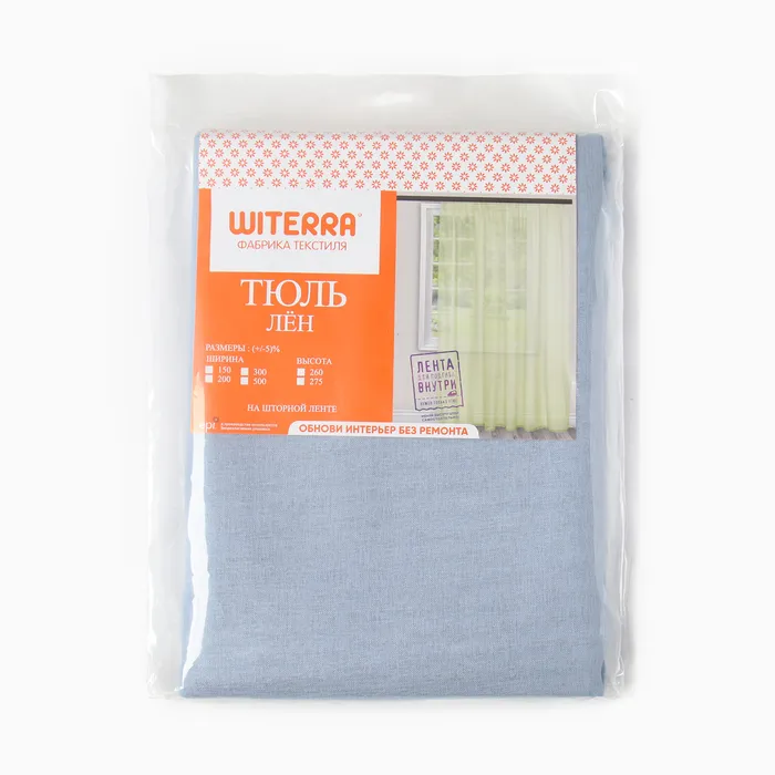 Штора-тюль для кухни Witerra Лен 140х180см, голубой , вуаль, пэ100% — Характеристики