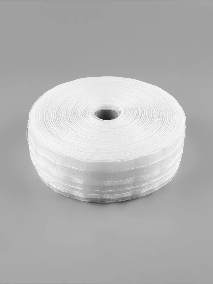 Изготовленная из высококачественной органзы, лента обладает прозрачностью и воздушностью, которые делают её идеальным выбором для создания лёгких и изысканных интерьеров. Белый цвет позволяет гармонично сочетаться с любым дизайном помещения, а длина 50±1 м обеспечивает достаточный запас материала для работы с различными типами штор. Два шнура обеспечивают точную регулировку складок, сохраняя при этом фиксированную форму сборки.