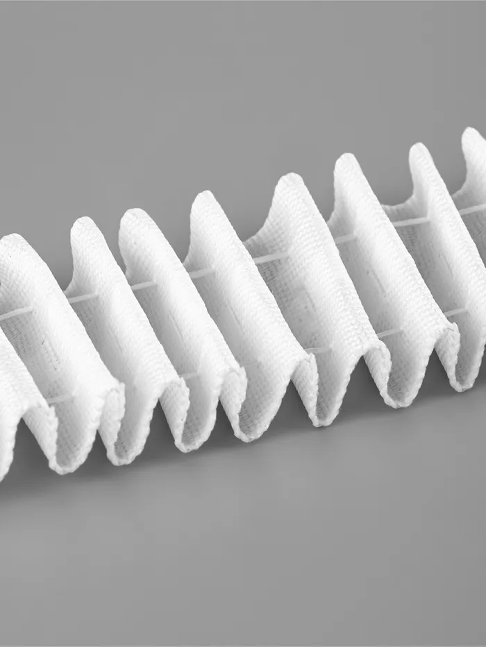 Изготовленная из прочного полиэстера, лента обладает матовой текстурой, которая придаёт ей элегантный вид и помогает избежать бликов света. Длина 100±1 м позволяет использовать её для штор различной длины и ширины, а два включённых шнура обеспечивают точную регулировку складок и удобство управления.
