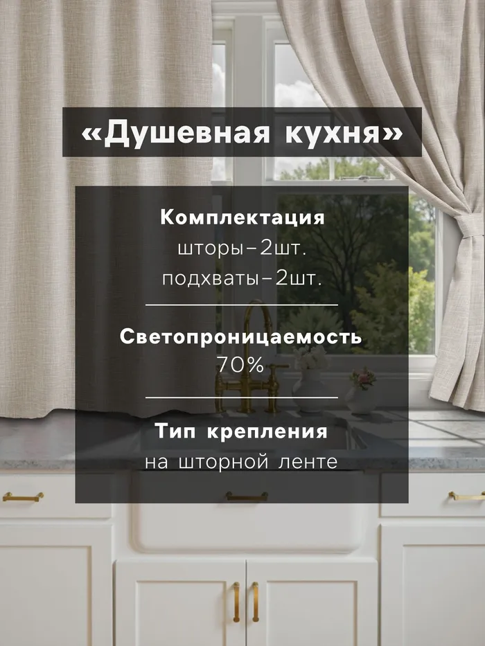 Шторы для кухни Доляна «Душевная кухня», 146×180 см - 2 шт., подхваты - 2 шт., 50% хлопок, 50% пэ — Характеристики