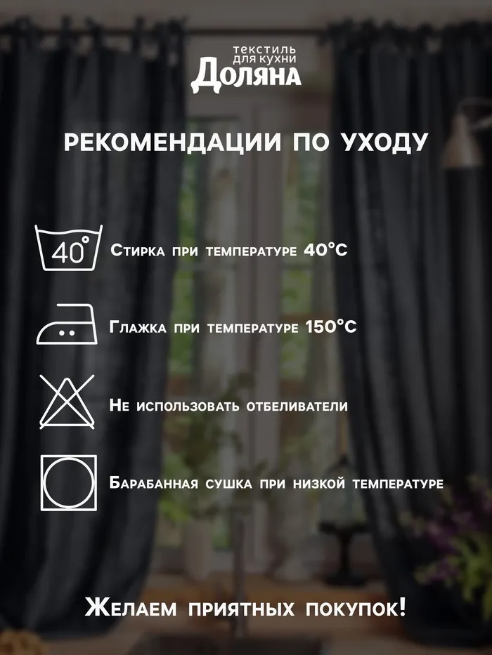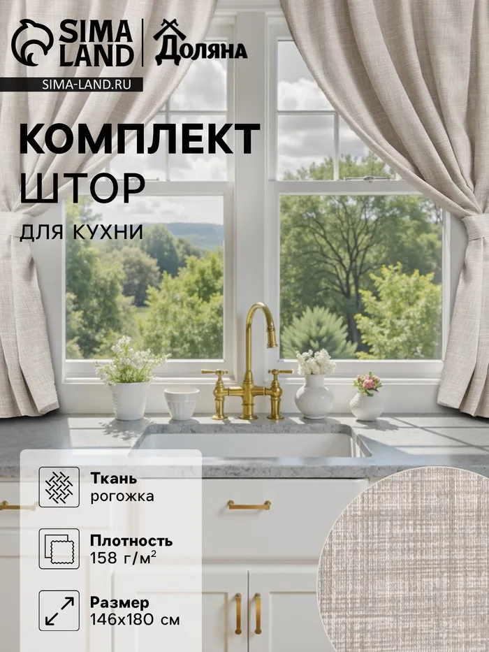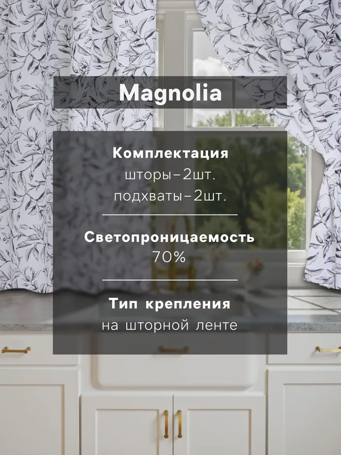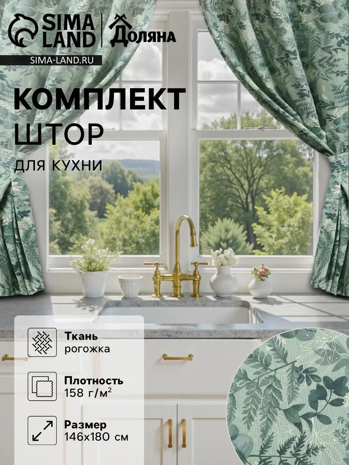 Шторы для кухни Доляна Plant leaves 146х180 см - 2 шт, подхваты - 2 шт, 100% хлопок, 164 г/м2 — Характеристики