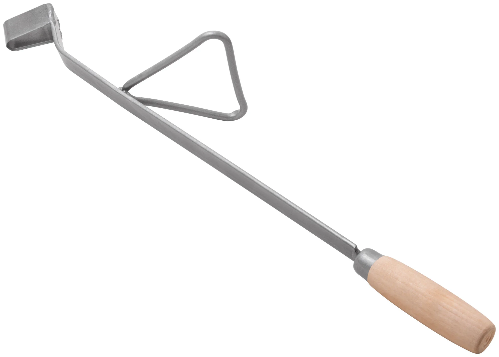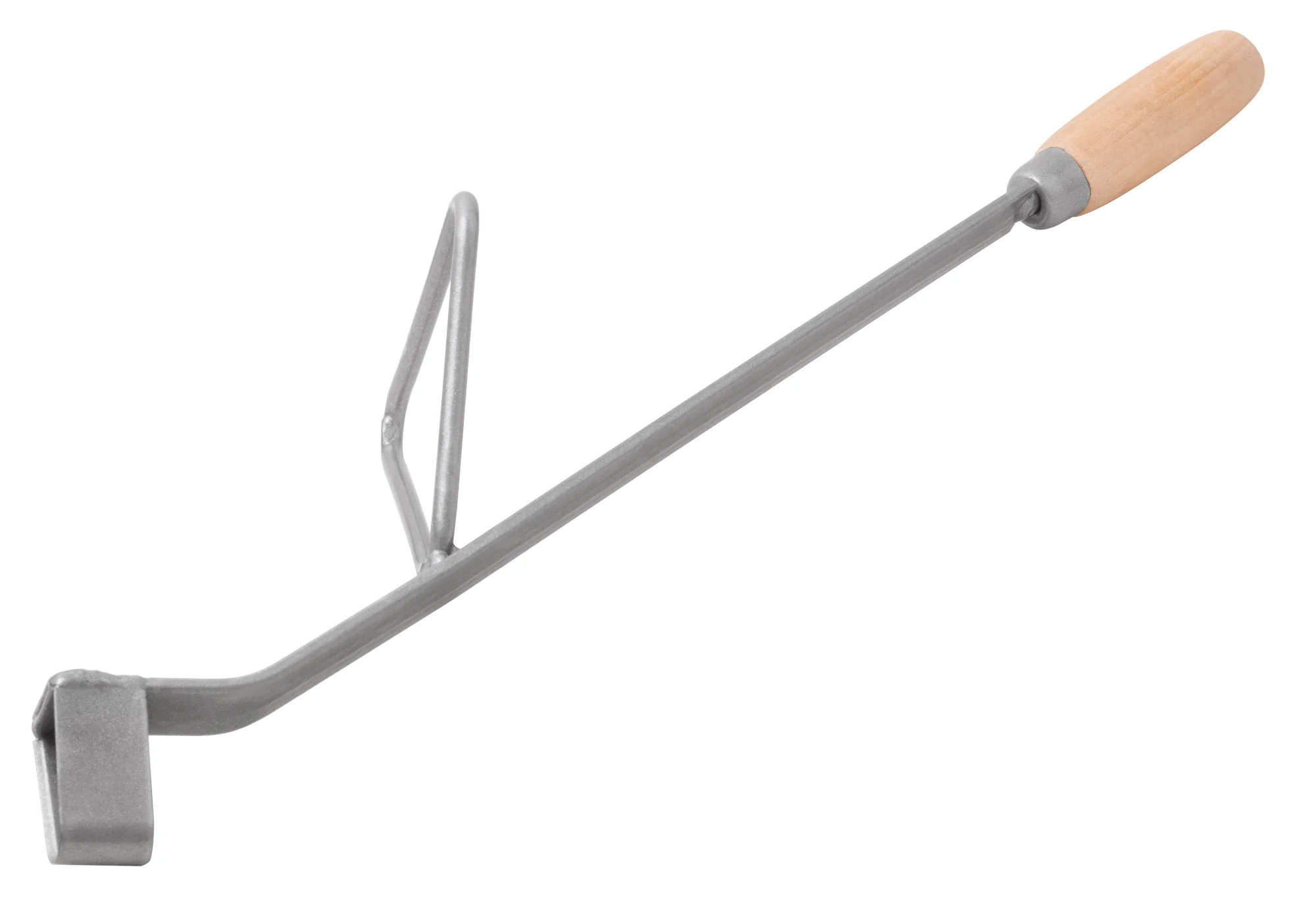 Штроборез изготовлен из инструментальной стали, что обеспечивает его долговечность и надежность. Удобная деревянная ручка гарантирует комфорт при длительном использовании. Длина инструмента составляет 555 мм, что делает его подходящим для большинства строительных задач.