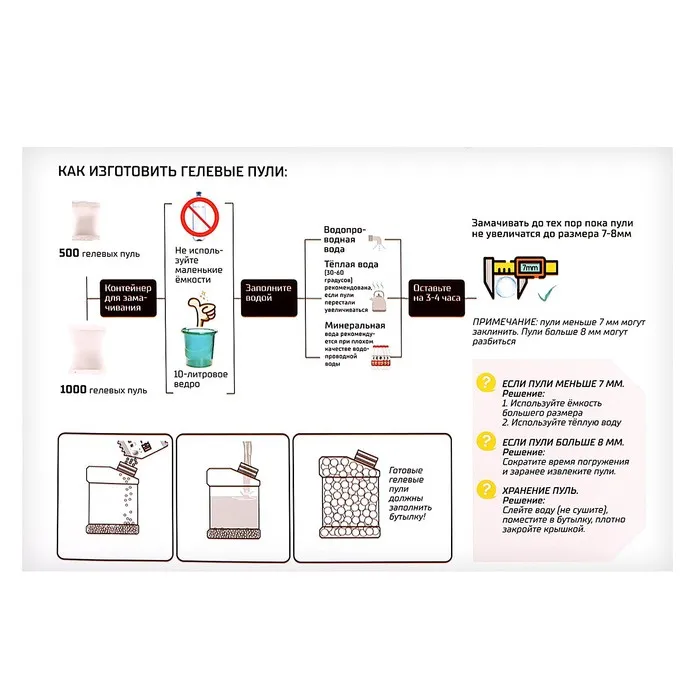 - В комплекте 2 000 гелевых пуль 7–8 мм.