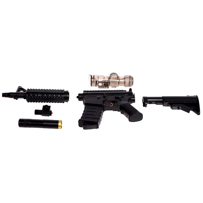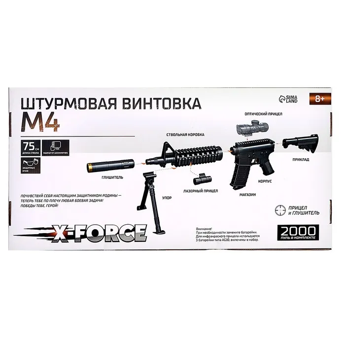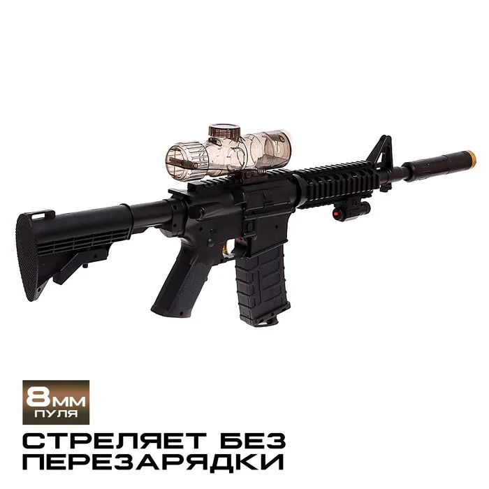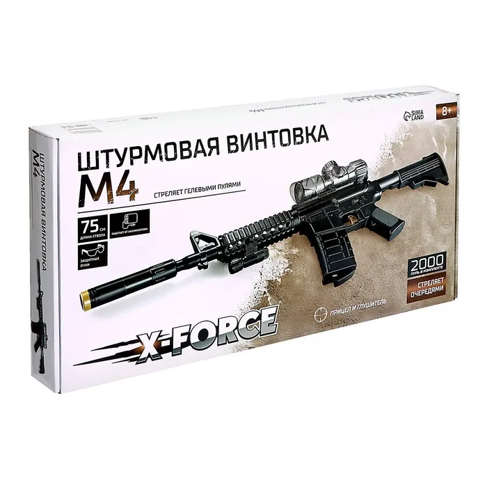 Штурмовая винтовка M4 — это надёжное оружие, которое позволит ребёнку почувствовать себя настоящим бойцом. Она стреляет гелевыми пулями. Такие снаряды лопаются при столкновении, не оставляют следов и не причиняют вреда.