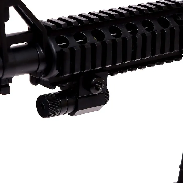 - M4 можно разобрать на части: глушитель, упор, лазерный прицел, корпус с магазином, оптический прицел (имитация), приклад.