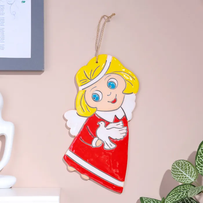 Панно "Ангел с голубем", 18х8 см, майолика