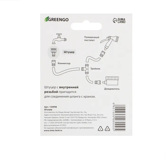 Штуцер, внутренняя резьба 1", быстросъёмное соединение, пластик, Greengo — Характеристики