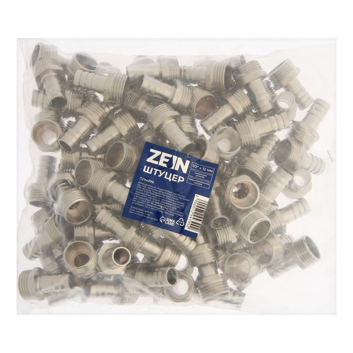 Штуцер ZEIN, 1/2" х 12 мм наружная резьба, никелированная латунь, фасовка 100 шт. — Характеристики
