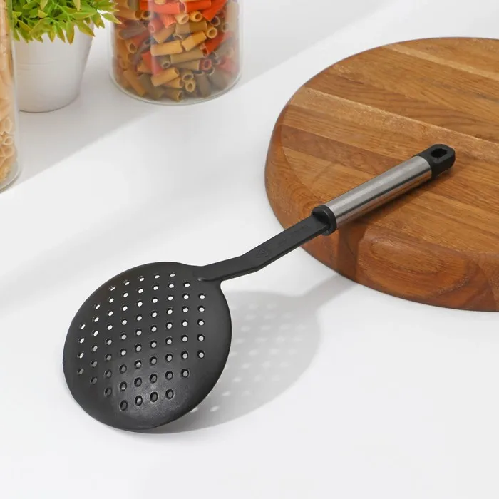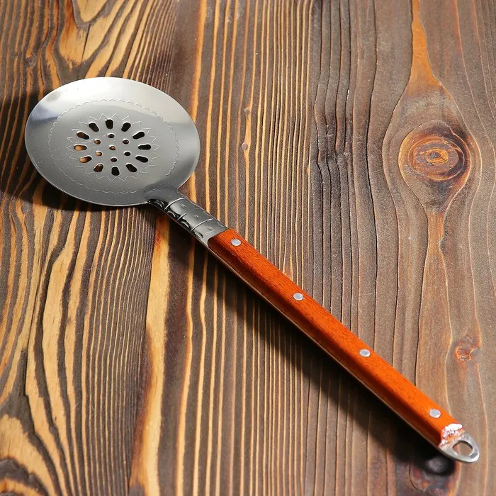 Шумовка — отличный и практичный помощник на любой кухне. Используется для быстрого извлечения из горячей воды макаронных изделий, пельменей, вареников и овощей, а также для удаления пены с супа. Столовый прибор не впитывает запахов и вкуса продуктов, поэтому он отличается универсальностью.