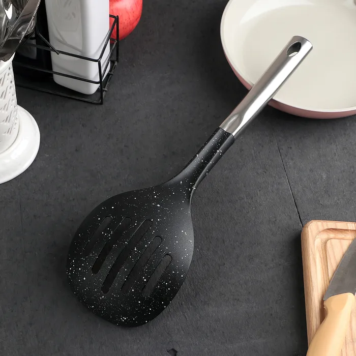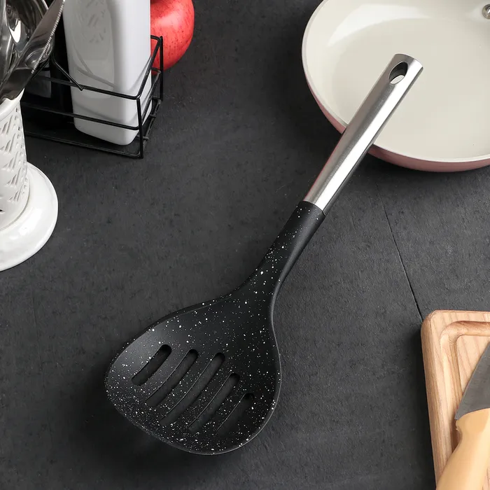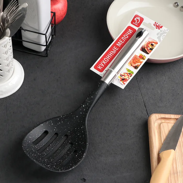 Шумовка — отличный и практичный помощник на любой кухне. Используется для быстрого извлечения из горячей воды макаронных изделий, пельменей, вареников и овощей, а также для удаления пены с супа. Столовый прибор не впитывает запахов и вкуса продуктов, поэтому он отличается универсальностью.