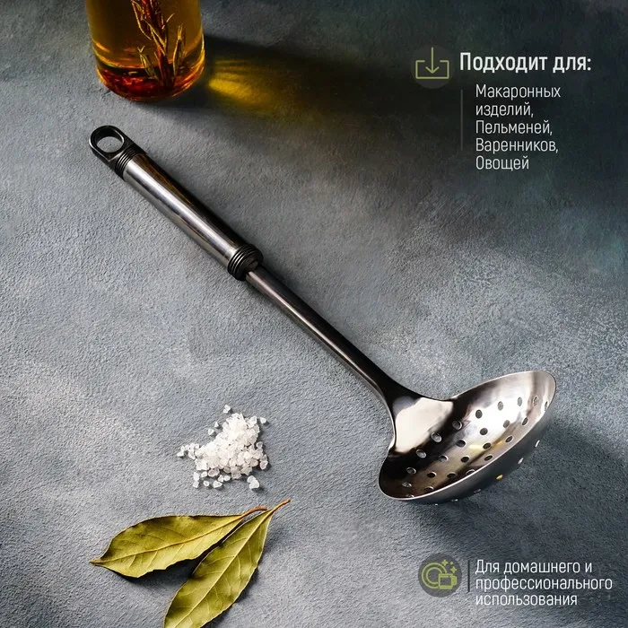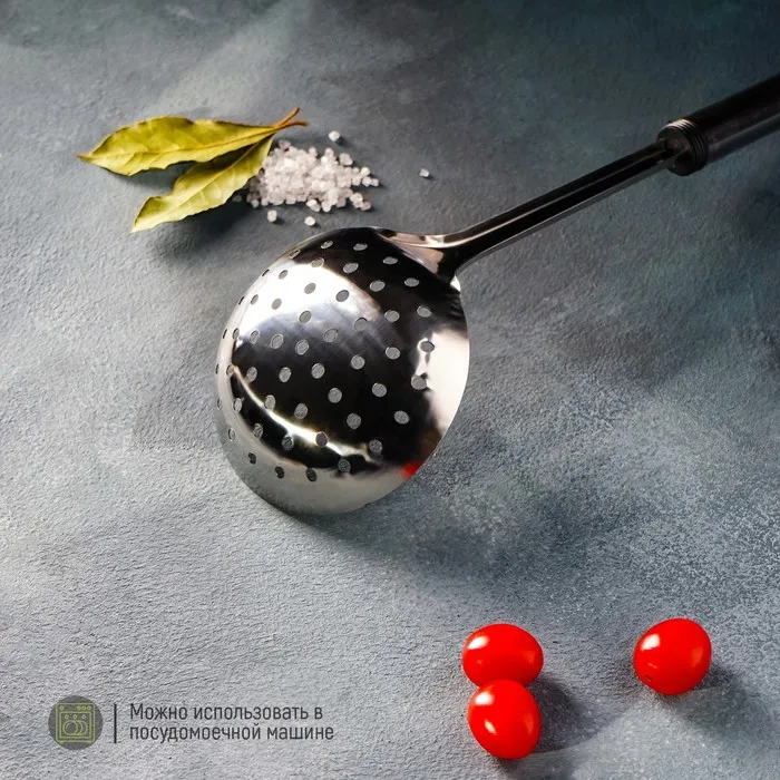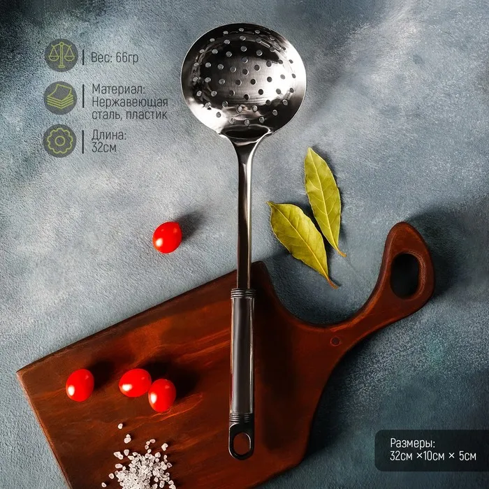 Шумовка из нержавеющей стали Доляна «Премиум», 32 см, цвет серебряный — Характеристики