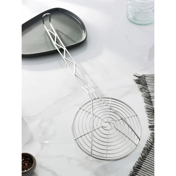 Шумовка из нержавеющей стали незаменима во время повседневной готовки. Её можно использовать для извлечения продуктов из кипящих жидкостей, для снятия пенки с поверхности бульона и т.д.
