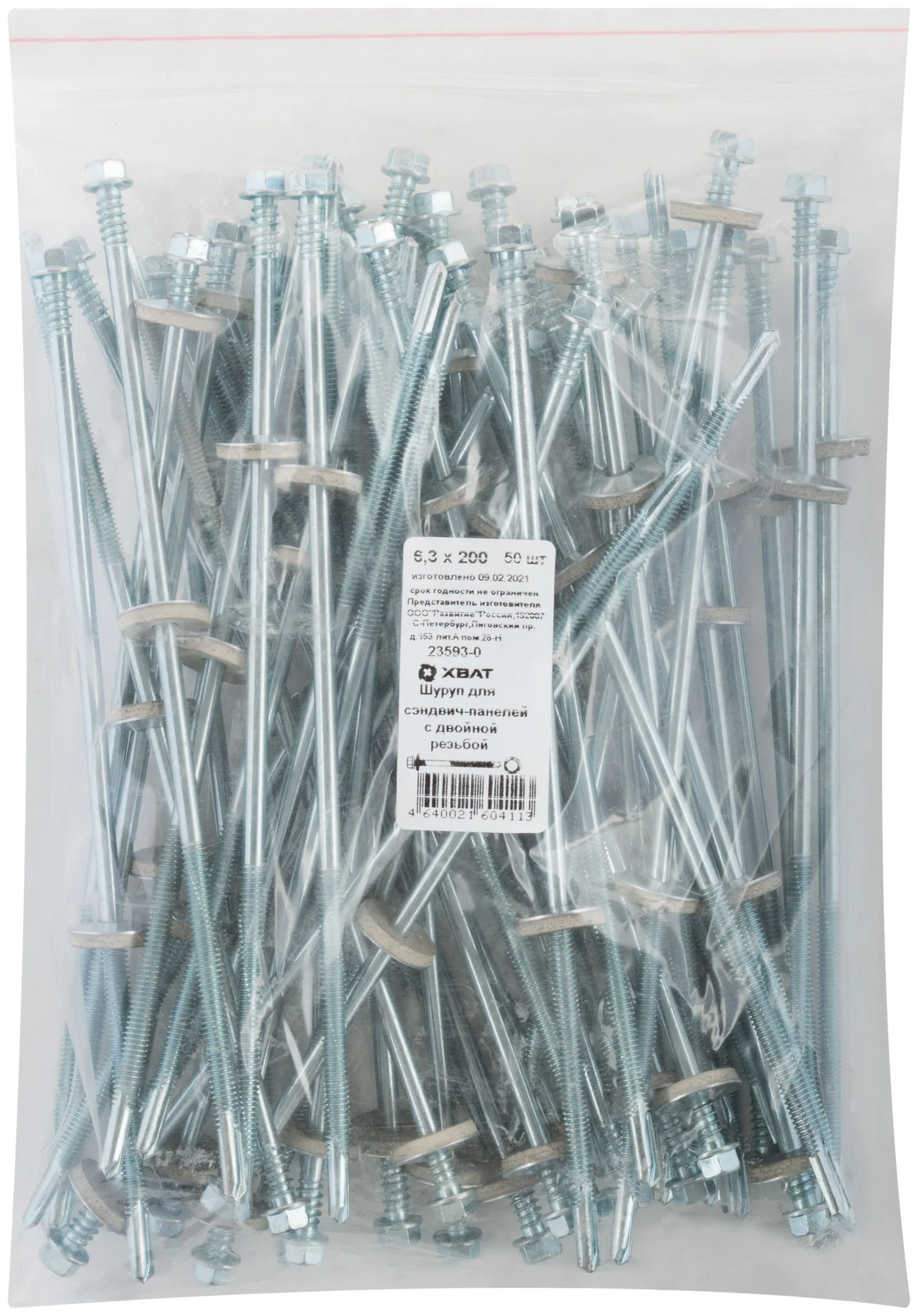 Шуруп для сэндвич-панелей с двойной резьбой 6,3х200 мм для монтажа