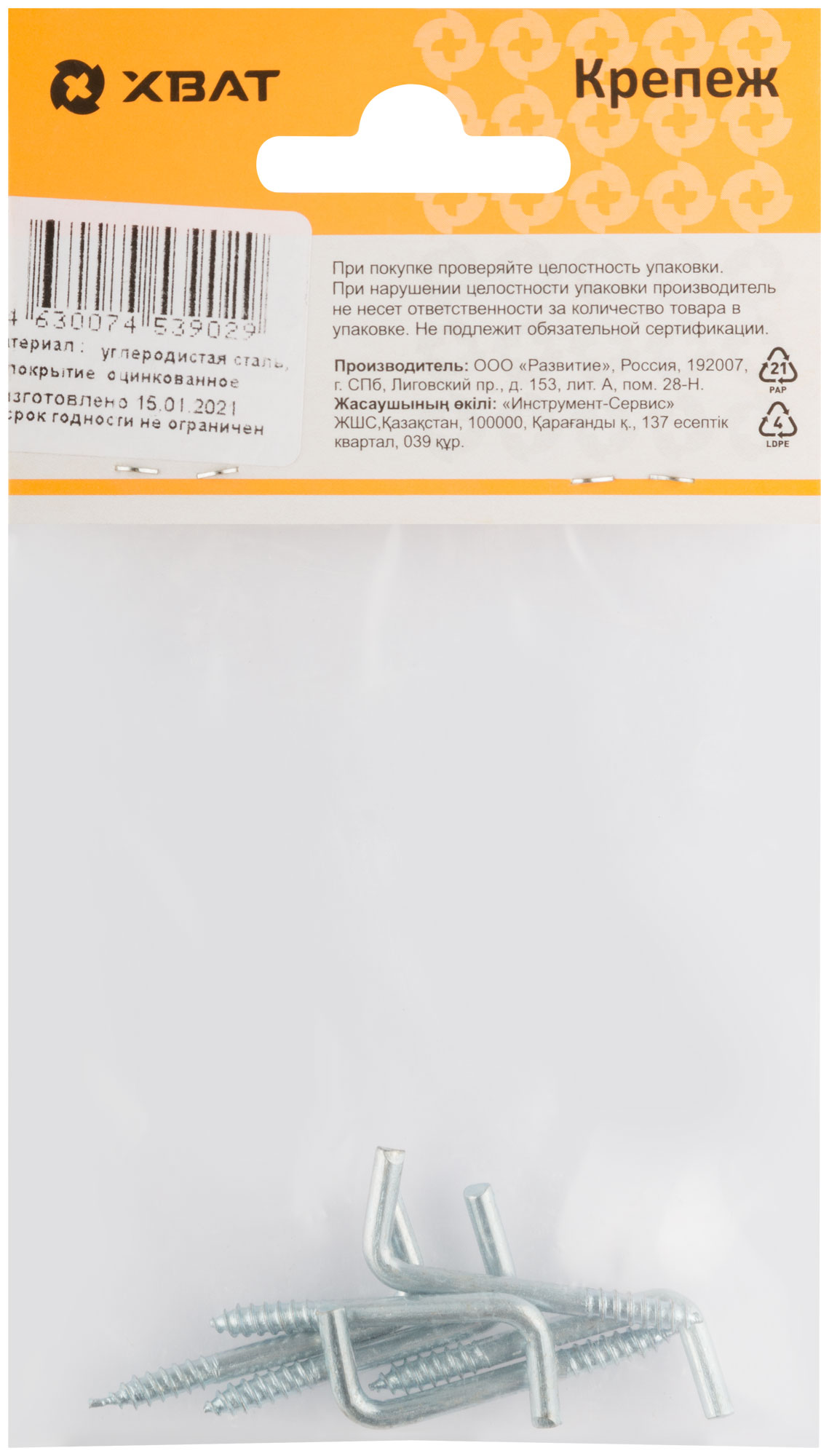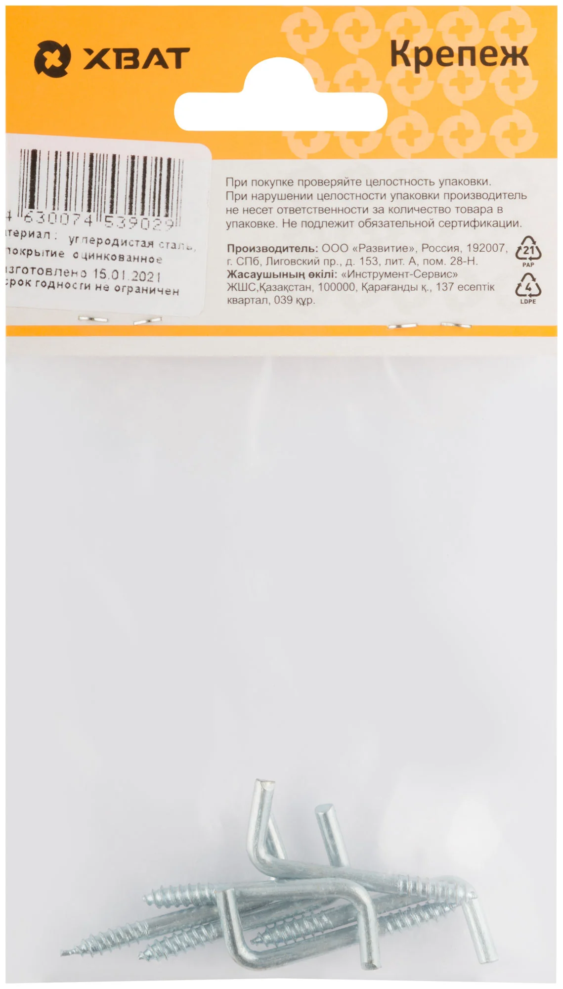Шуруп изготовлен из прочного материала с оцинкованным покрытием, что гарантирует защиту от коррозии и увеличивает срок службы. Формат упаковки в 6 штук позволяет удобно использовать его для небольших проектов или в быту.