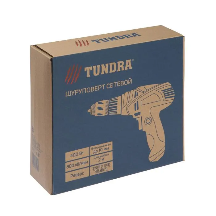 Шуруповерт сетевой ТУНДРА, патрон БЗ, обрезиненная рукоятка, 400 Вт, 800 об/мин — Характеристики