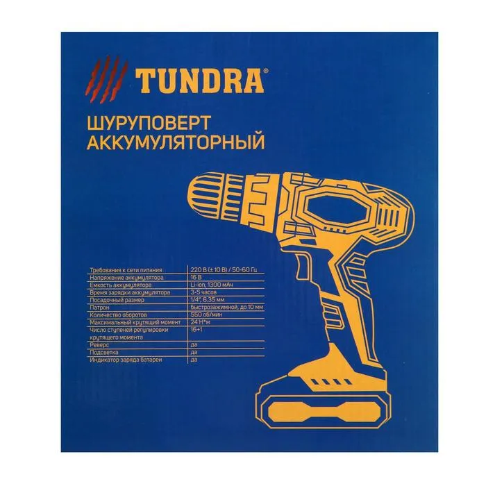 Аккумуляторная дрель-шуруповёрт ТУНДРА предназначена для ремонтных и монтажных работ.