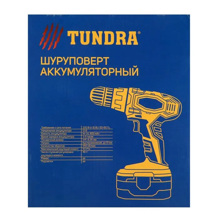Аккумуляторная дрель-шуруповёрт ТУНДРА предназначена для ремонтных и монтажных работ.