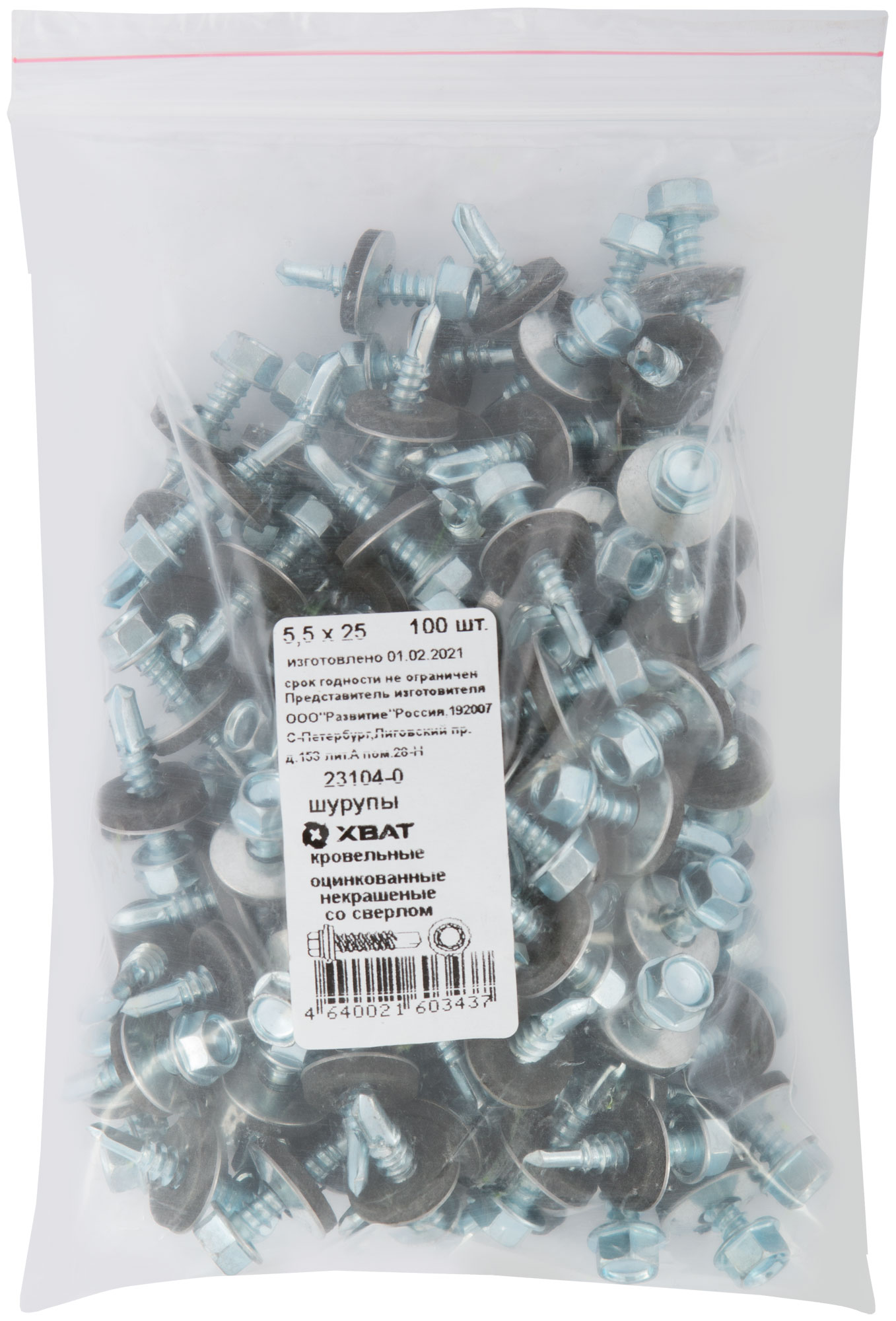 Шурупы кровельные оцинк. некрашеные, со сверлом М5,5 х 25 100шт. Фасовка
