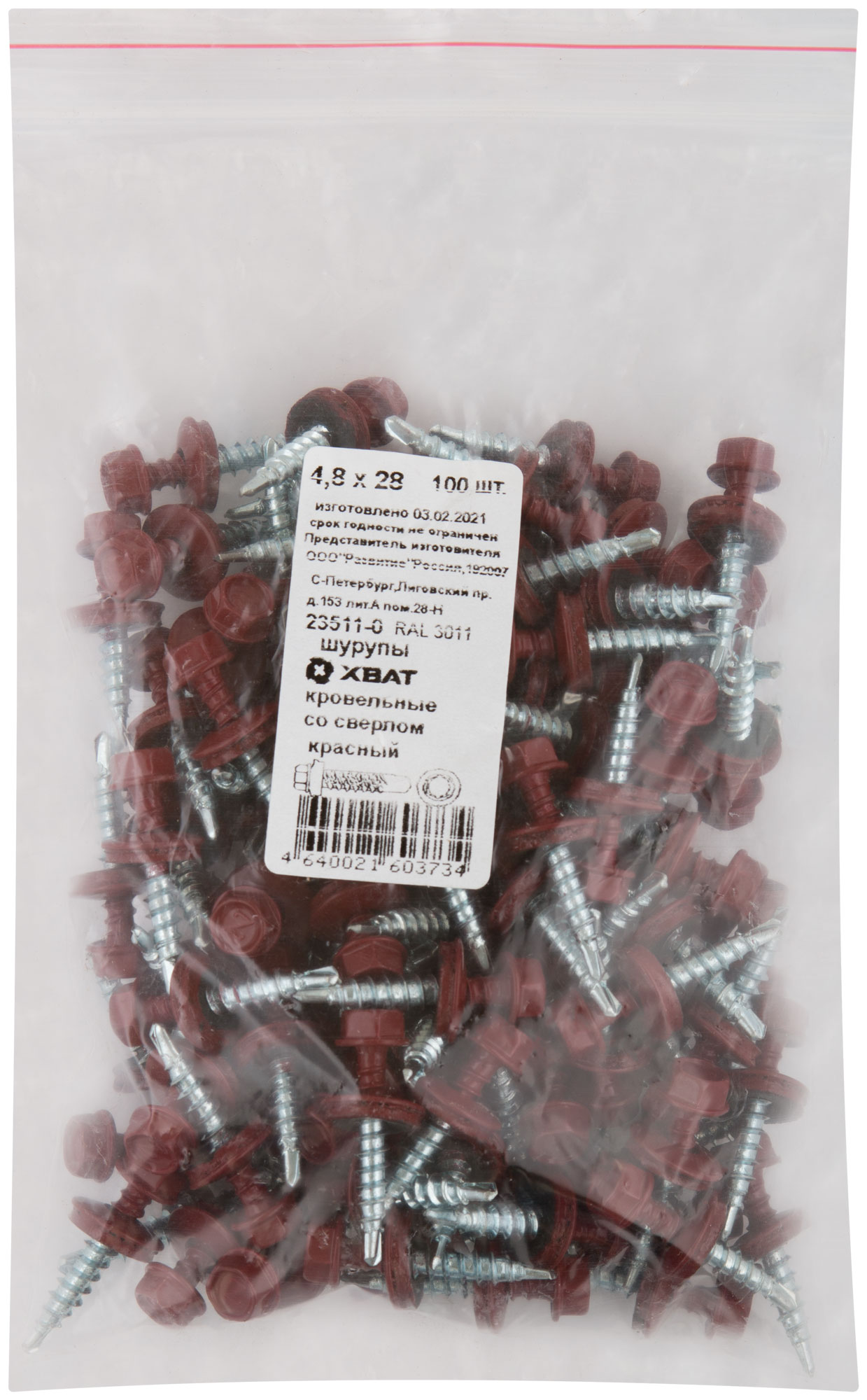 Шурупы кровельные со сверлом 4.8 х 28 мм от бренда XВАТ, окрашенные в красный цвет RAL 3011, идеально подходят для крепления кровельных материалов к деревянной обрешетке и металлу. Эти шурупы обеспечивают прочное соединение без необходимости предварительного сверления, что существенно упрощает монтаж.