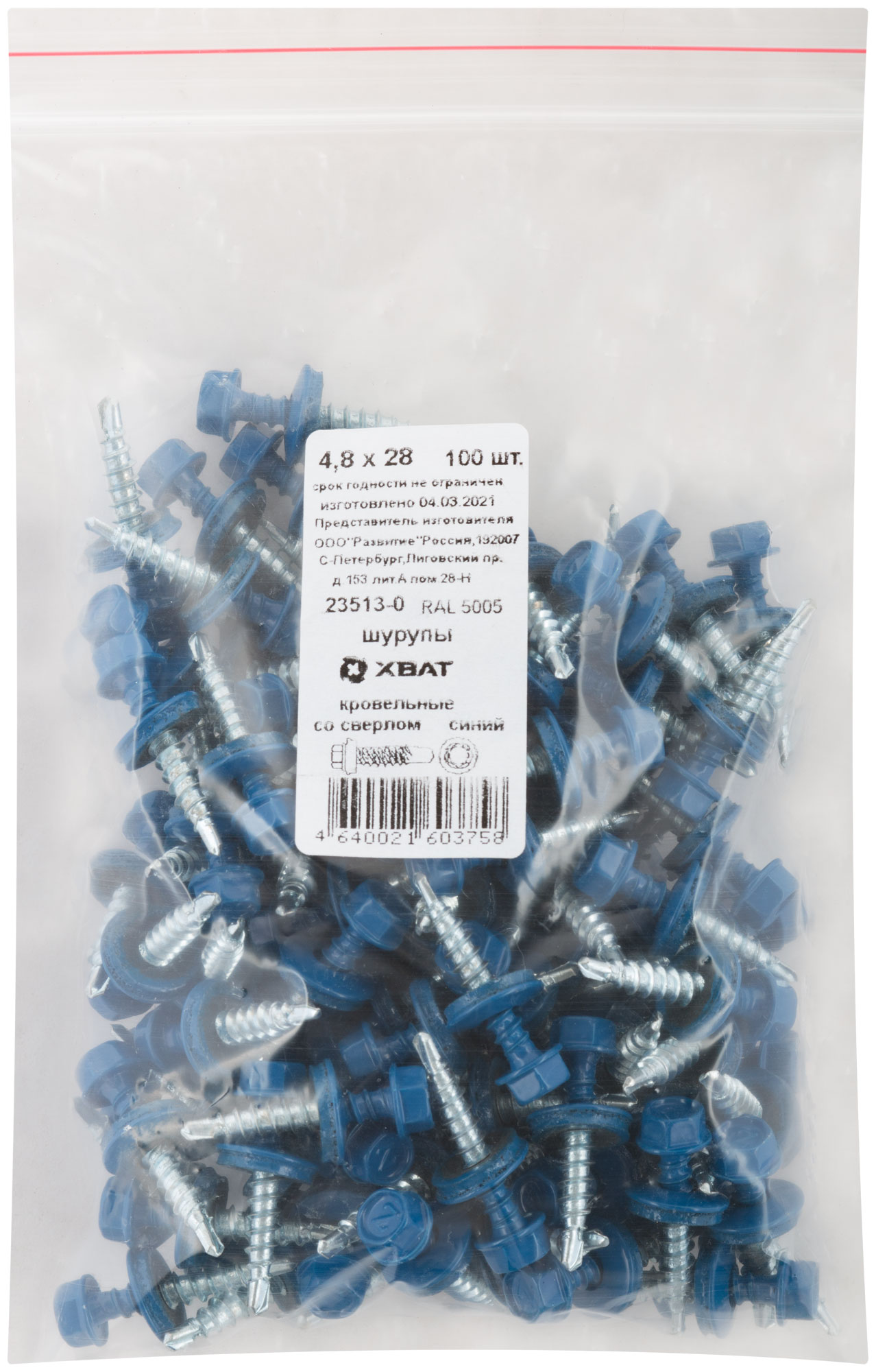 Типоразмер: 4,8х28-синий RAL5005 (100шт.)