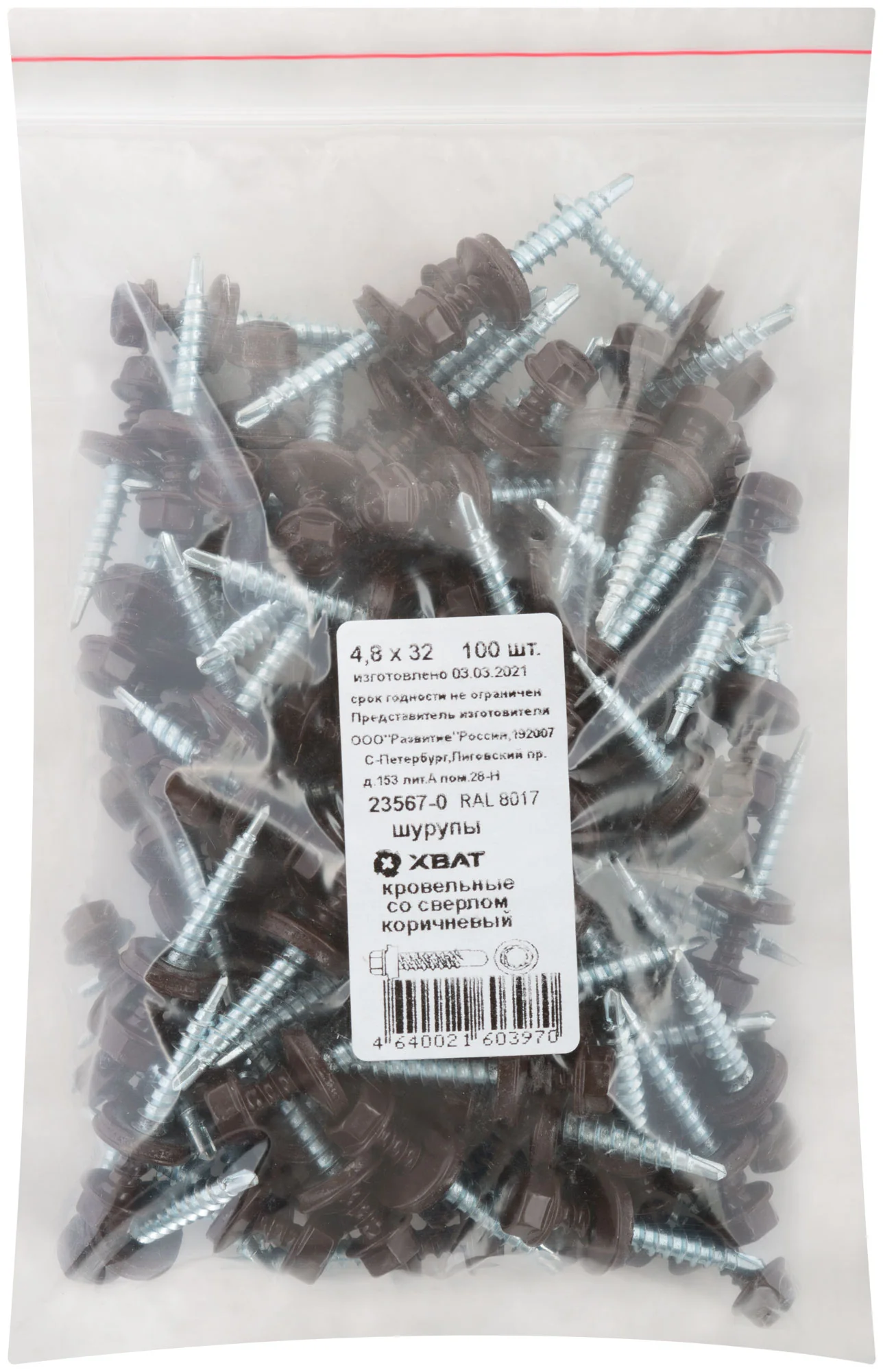 Шурупы кровельные со сверлом 4.8 х 32 мм, коричневый RAL-8017 для надежного крепления