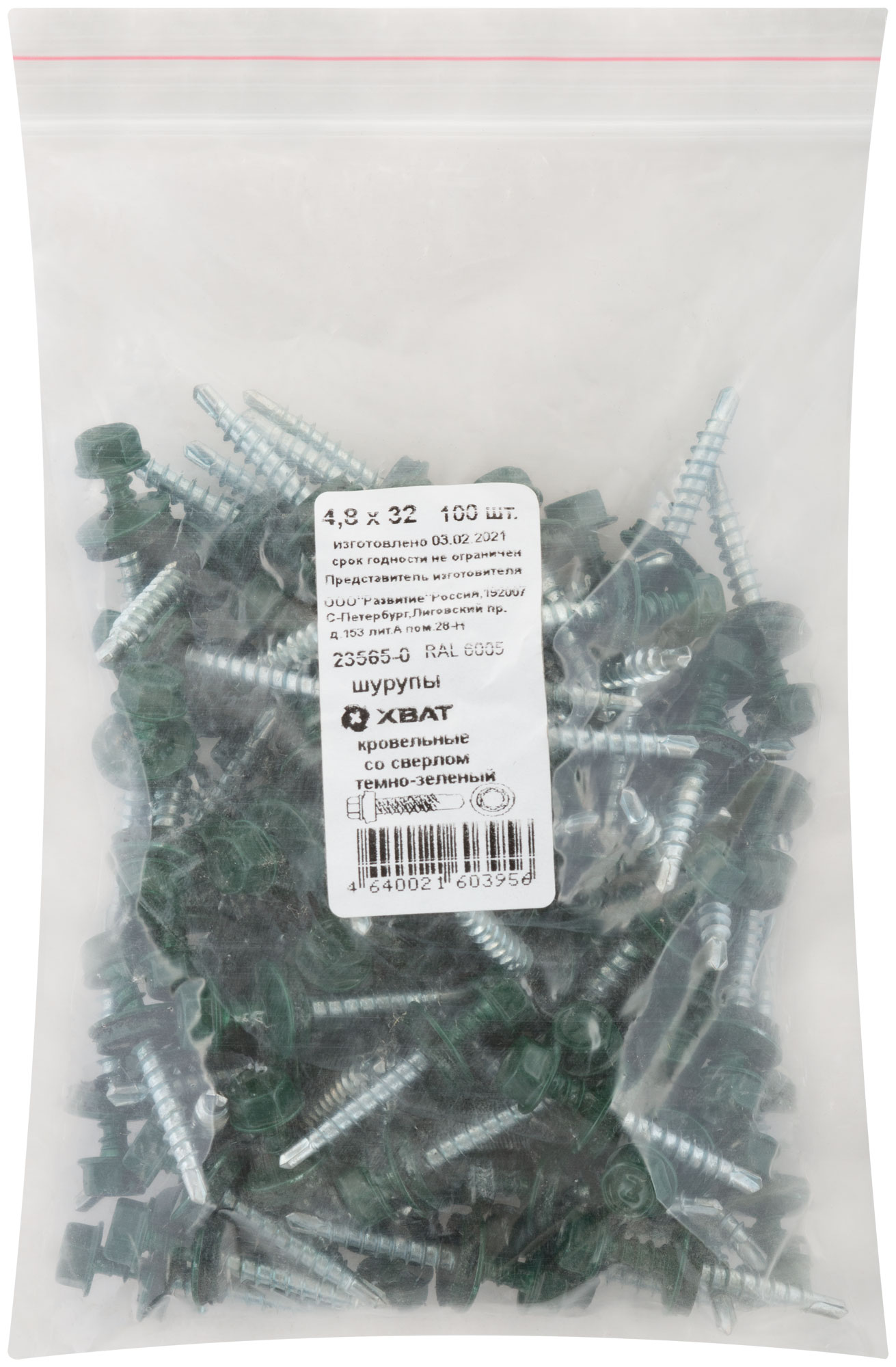 Кровельные шурупы 4.8 х 32 мм RAL-6005 для надежного крепления