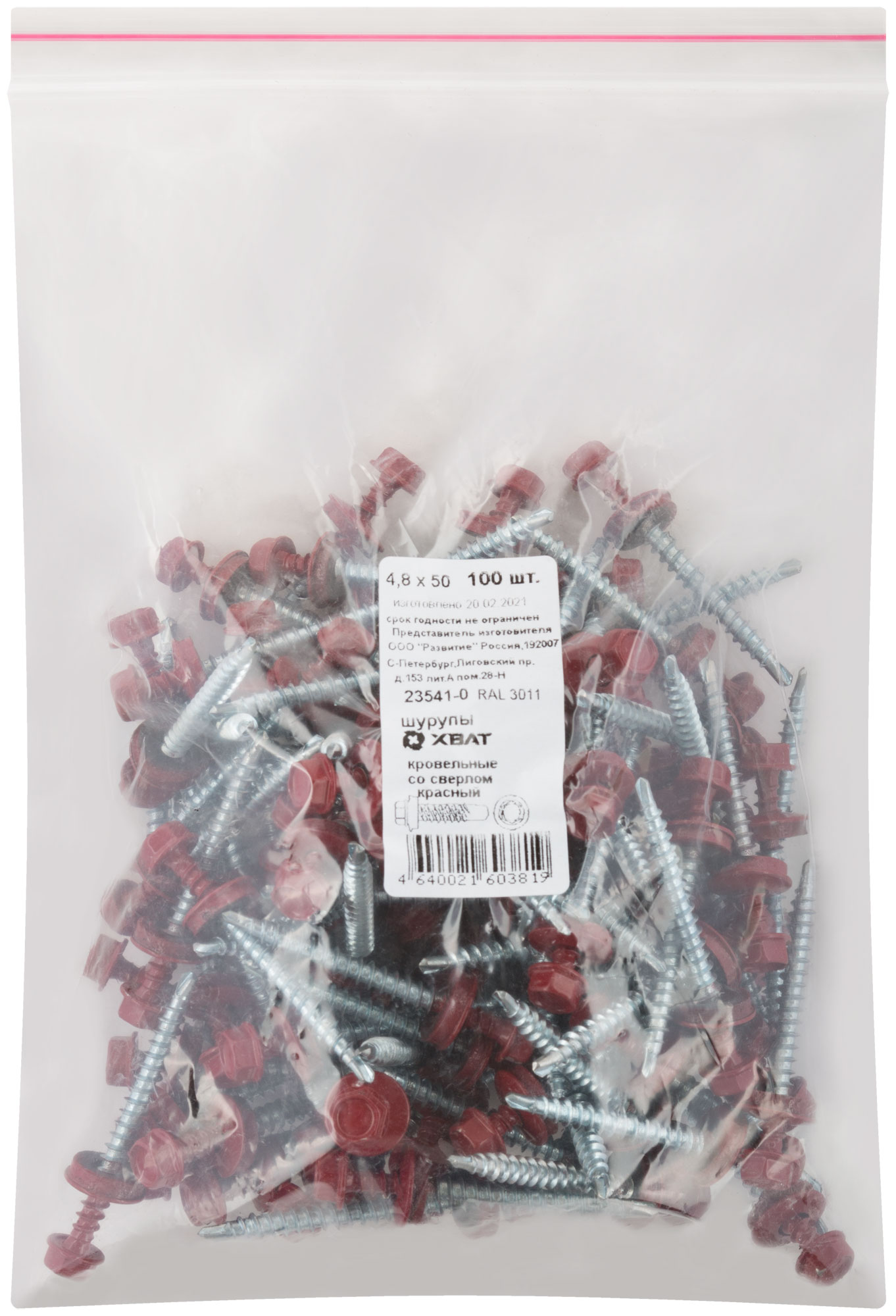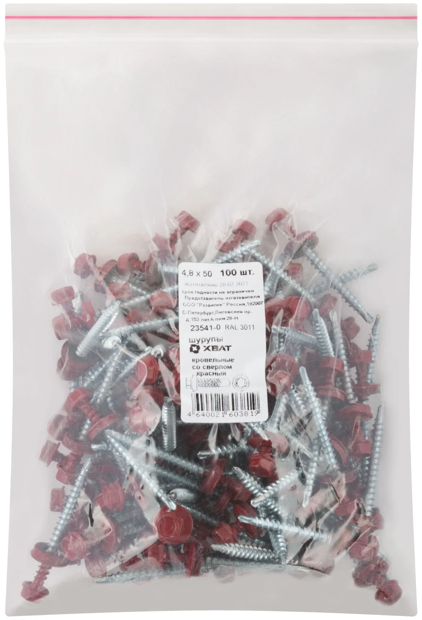 Кровельные шурупы 4.8 х 50 мм, красные, с прорезиненной шайбой