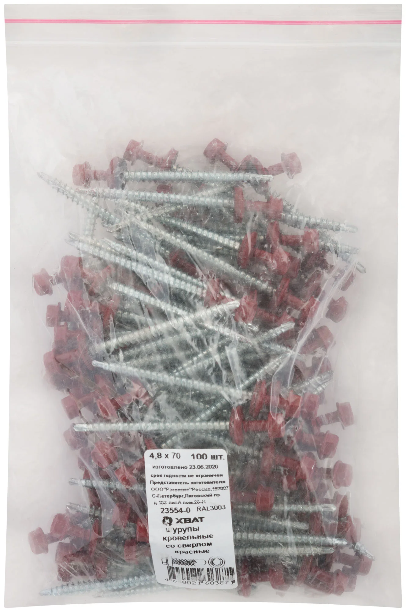 Шурупы окрашены в цвет RAL 3003, что обеспечивает эстетическое сочетание с основными цветами металлочерепицы. Оцинкованный слой защищает от коррозии, а прорезиненная шайба способствует плотному прилеганию и герметичности соединения.