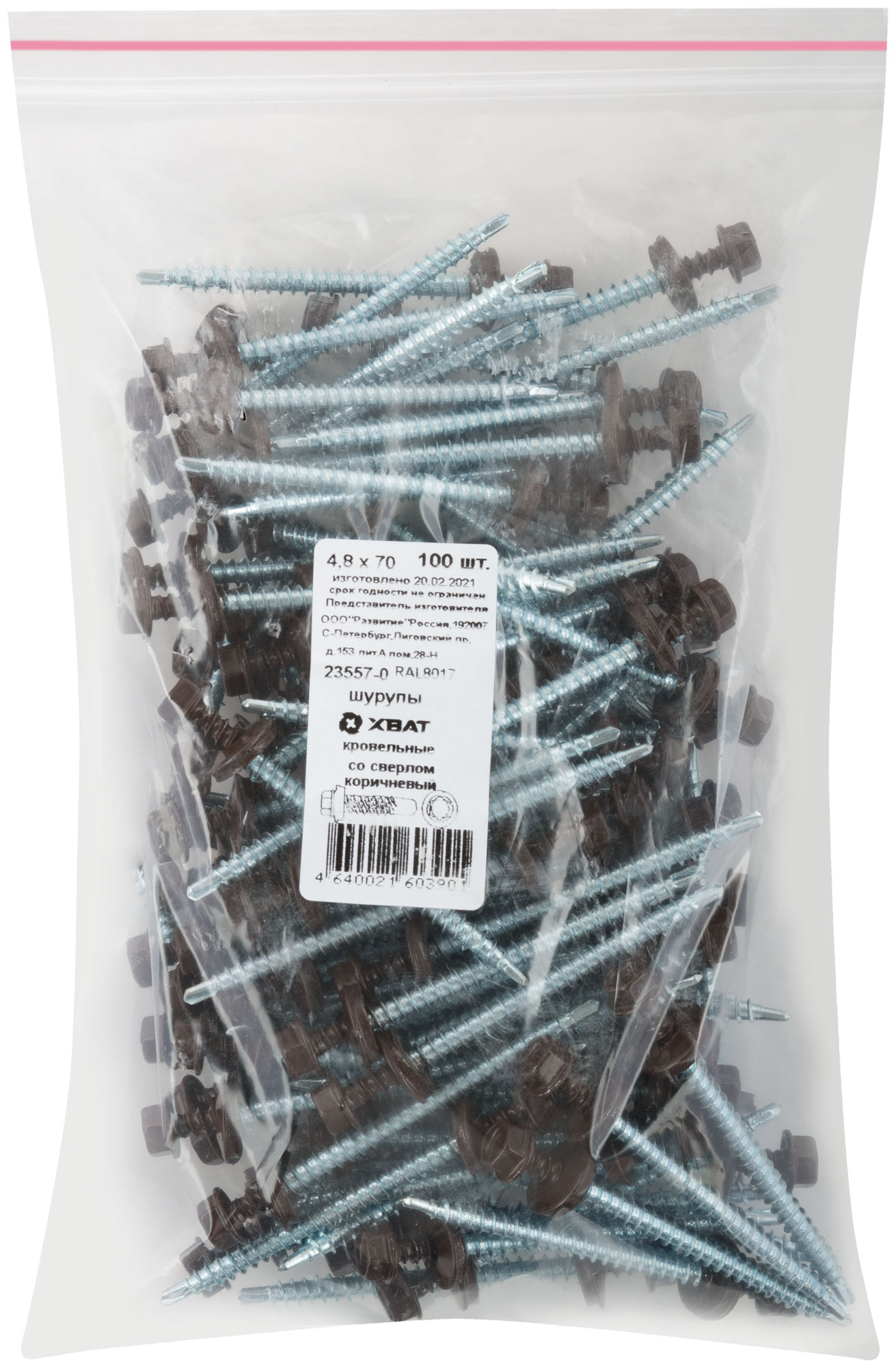 Шурупы кровельные со сверлом 4,8 х 70 коричневый RAL-8017 100шт. Фасовка