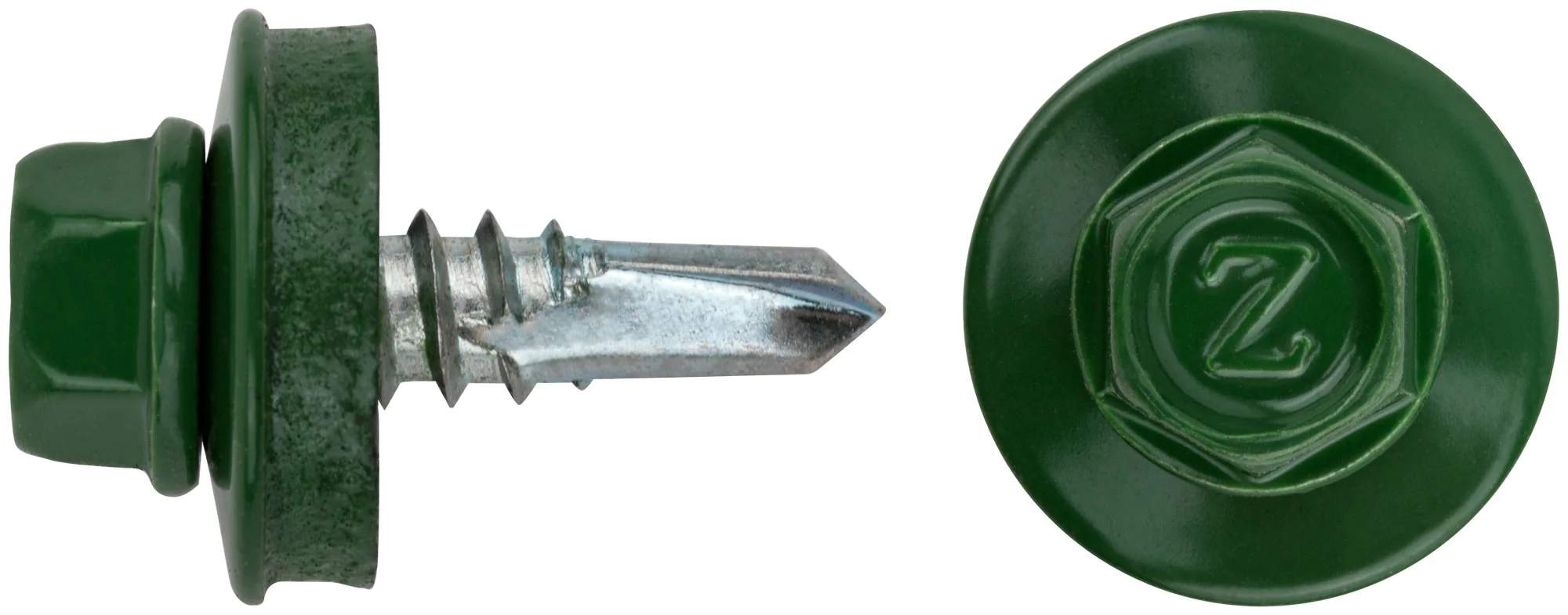 Изготовленные из оцинкованной стали, шурупы имеют защитное покрытие и окрашены в зеленый цвет по RAL 6002, что делает их подходящими для использования с соответствующей по цвету металлочерепицей. Прорезиненная шайба предотвращает протекание, обеспечивая долговечность конструкции.