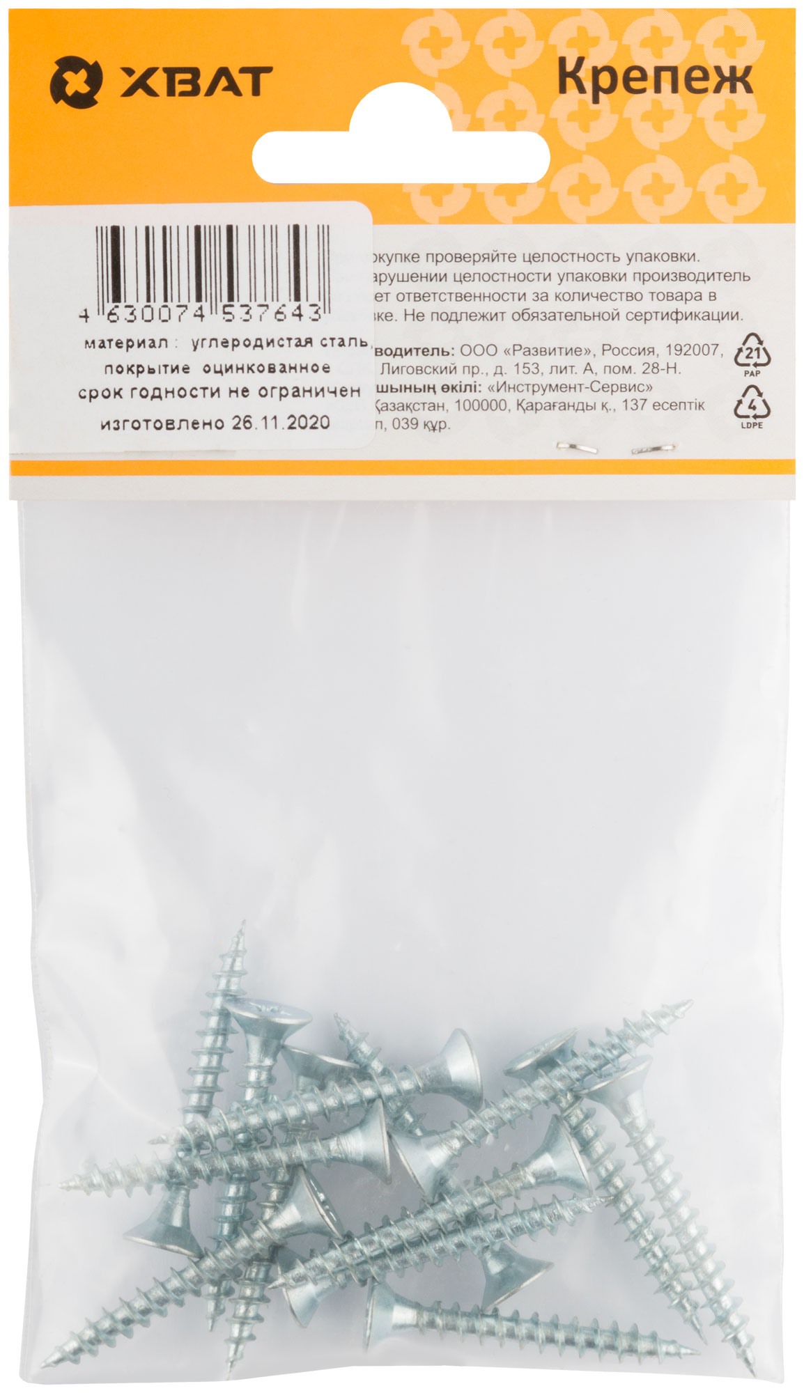 Произведенные в России, шурупы XВАТ из оцинкованной стали гарантируют защиту от коррозии и долговечность. Упаковка содержит 13 штук, что удобно для небольших проектов.