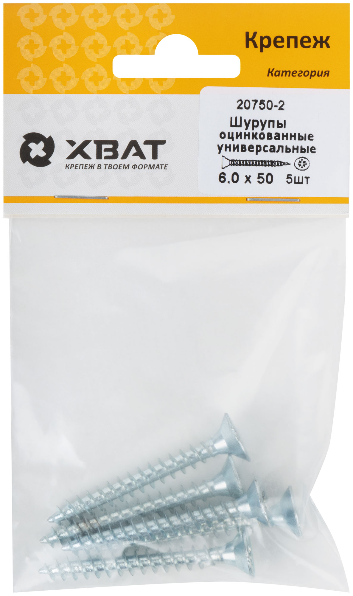 Выберите шурупы XВАТ 6х50 мм, артикул 20750-2, чтобы обеспечить надежное крепление и долговечность ваших конструкций.