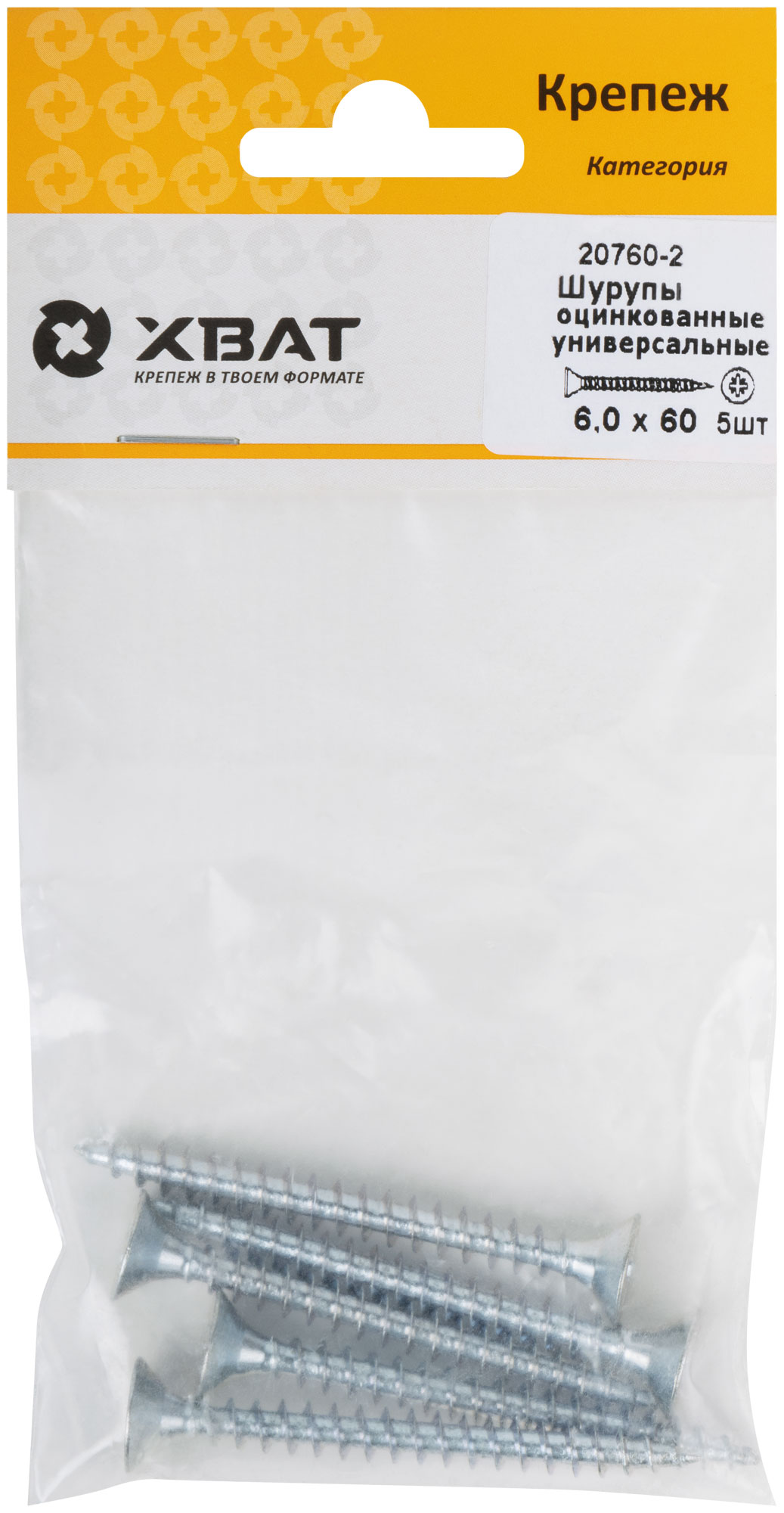 Выберите шурупы XВАТ 6 х 60 мм, чтобы обеспечить надежность и долговечность ваших крепежных решений.
