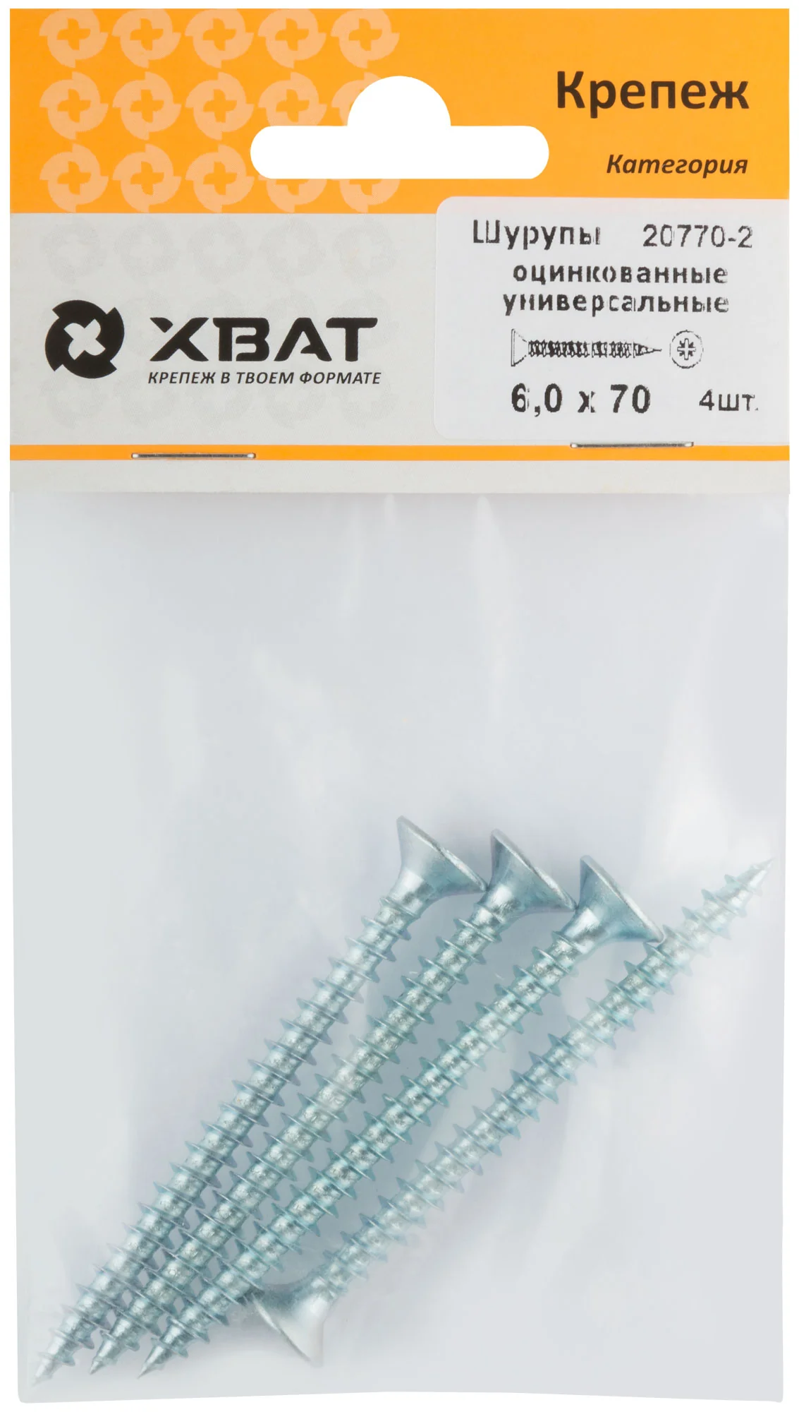 Шурупы оцинкованные, универсальные 6 х 70 ( фасовка 4 шт.)