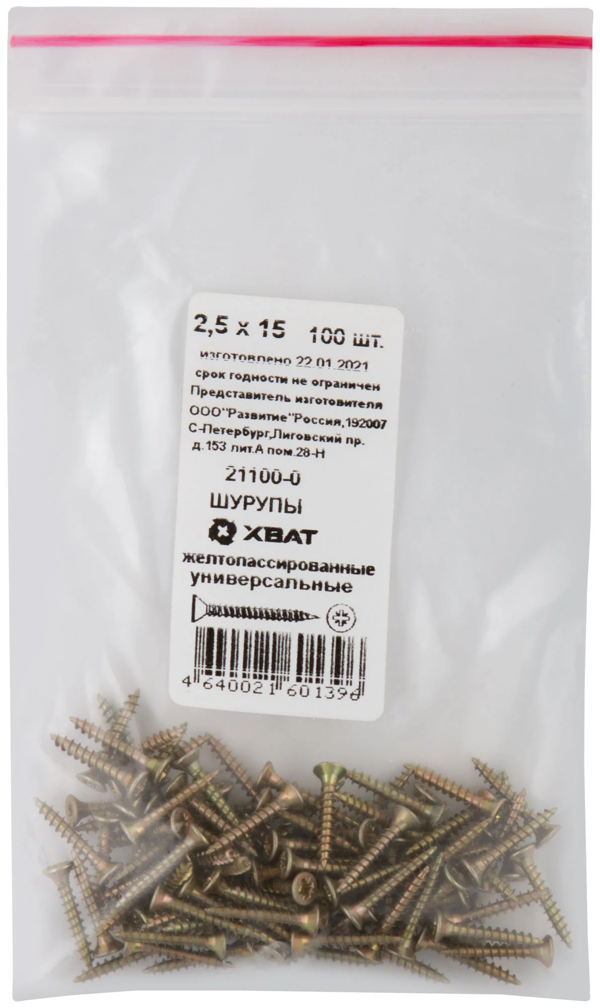 Шурупы XВАТ 2,5 х 15 мм обладают острым наконечником и резьбой под углом 40 градусов, что обеспечивает прочное соединение даже при небольшом крутящем моменте. Их универсальность делает их отличным выбором для различных монтажных работ.