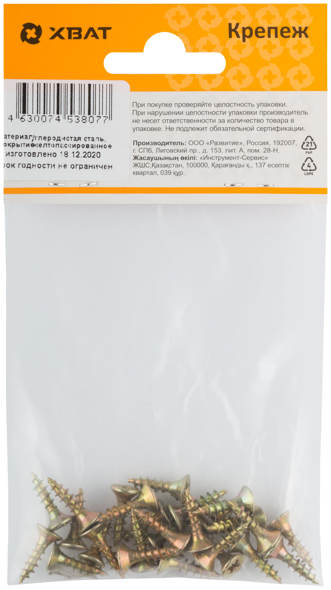 Шурупы от бренда XВАТ обладают острым наконечником и широкой резьбой под углом 40 градусов, что обеспечивает надежное и прочное соединение. Шурупы имеют желтопассированное покрытие, увеличивающее защиту от коррозии и продлевающее срок службы изделия.