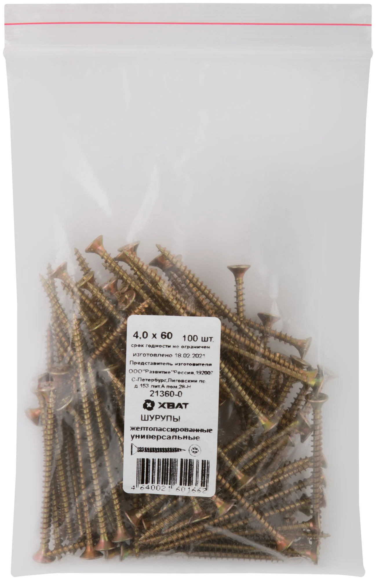 Эти желтопассированные шурупы XВАТ 4x60 мм идеально подходят для крепления различных строительных материалов, таких как дерево, ДСП, фанера и пластик. Используйте их для надежной фиксации в предварительно просверленных отверстиях, обеспечивая прочное соединение даже при минимальном крутящем моменте.